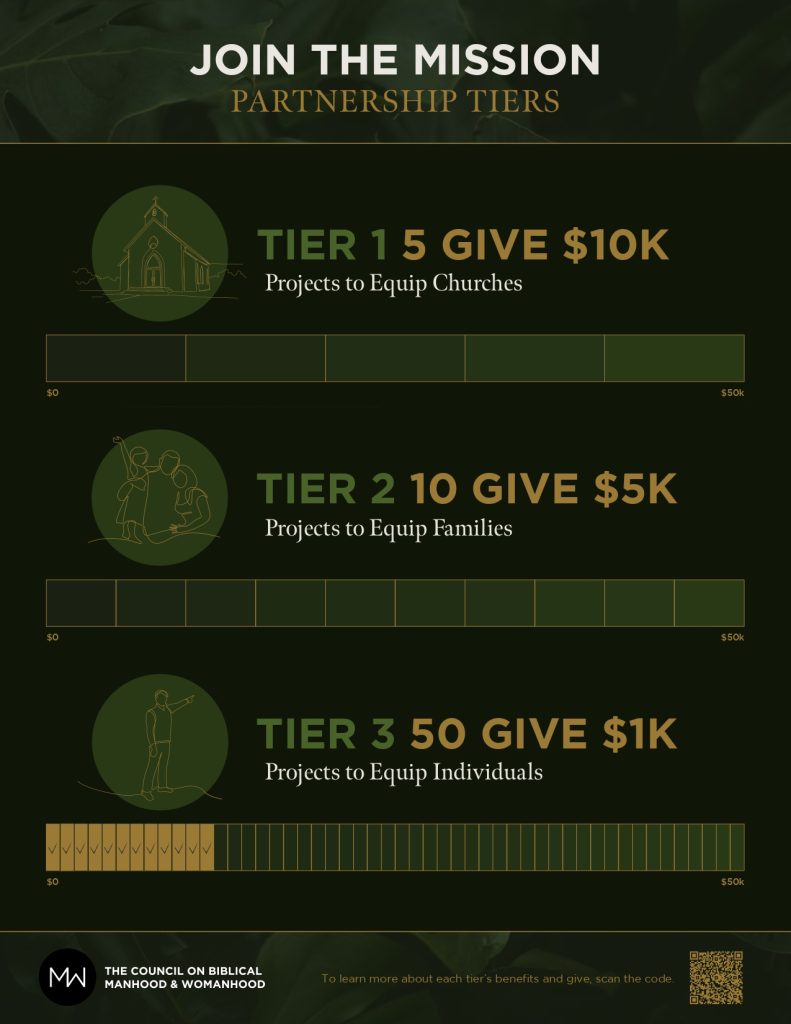This is where you come in. If CBMW has ever helped your church or your family stand firm on God’s design, would you consider becoming a mission partner? As churches, we can accomplish more together than we can individually:
